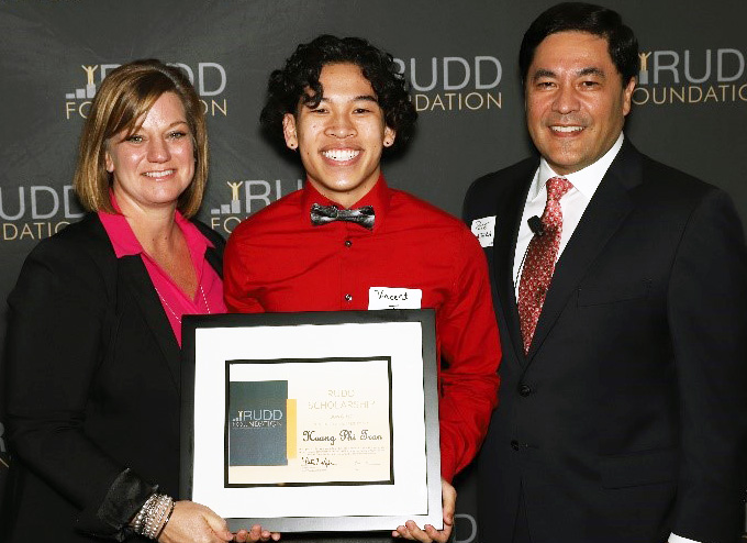 Vince Tran from Wichita South High School is pictured here receiving his Rudd Scholarship.